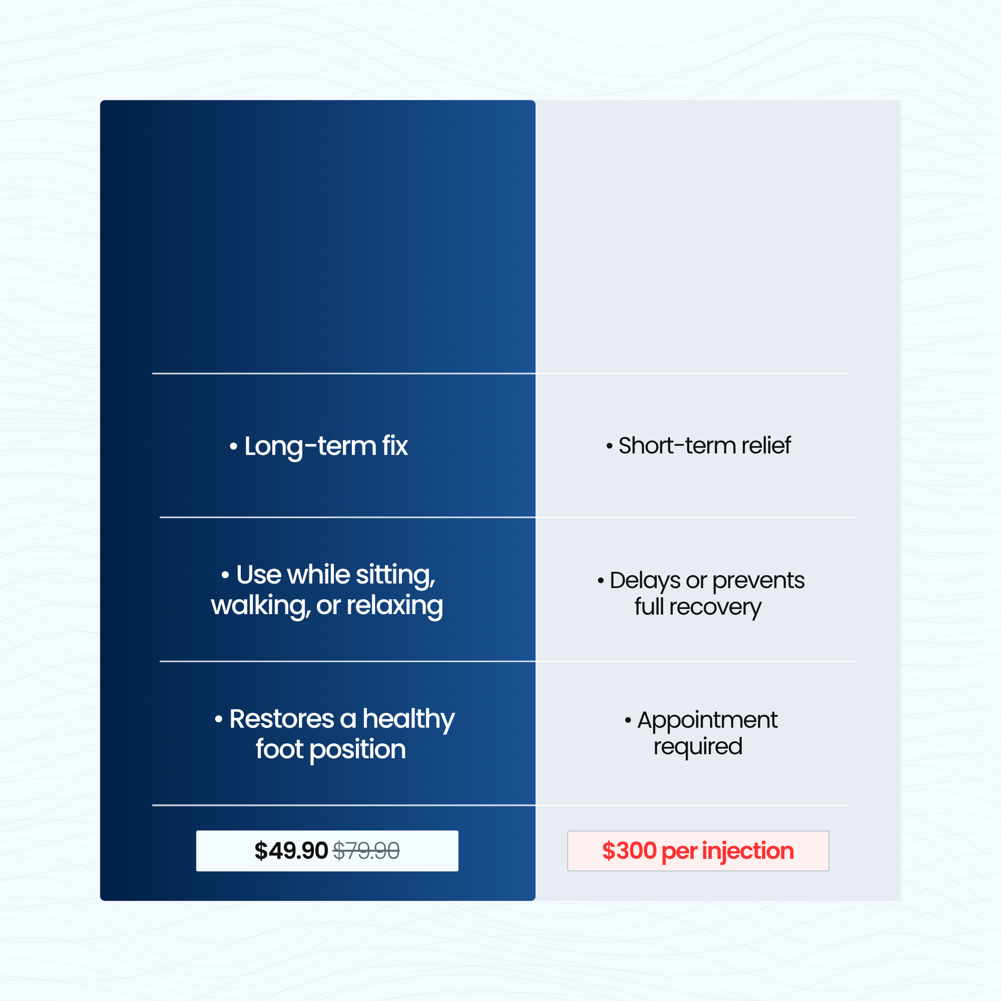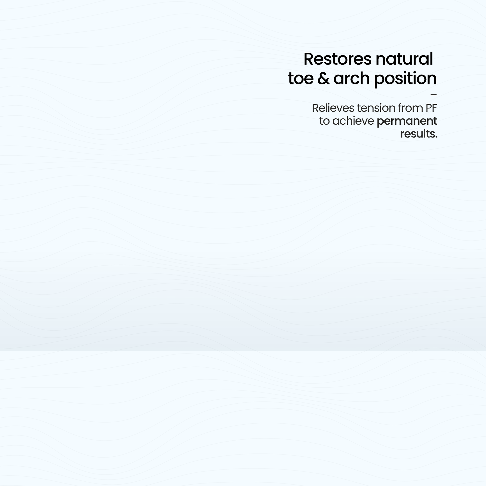 While stretching the plantar fascia at an optimal 15° angle, Restore not only relieves fascia tension but also features a built-in toe aligner that corrects toe positioning with just 10 minutes of daily wear, permanently restoring the natural and healthy toe, arch, and overall foot position.