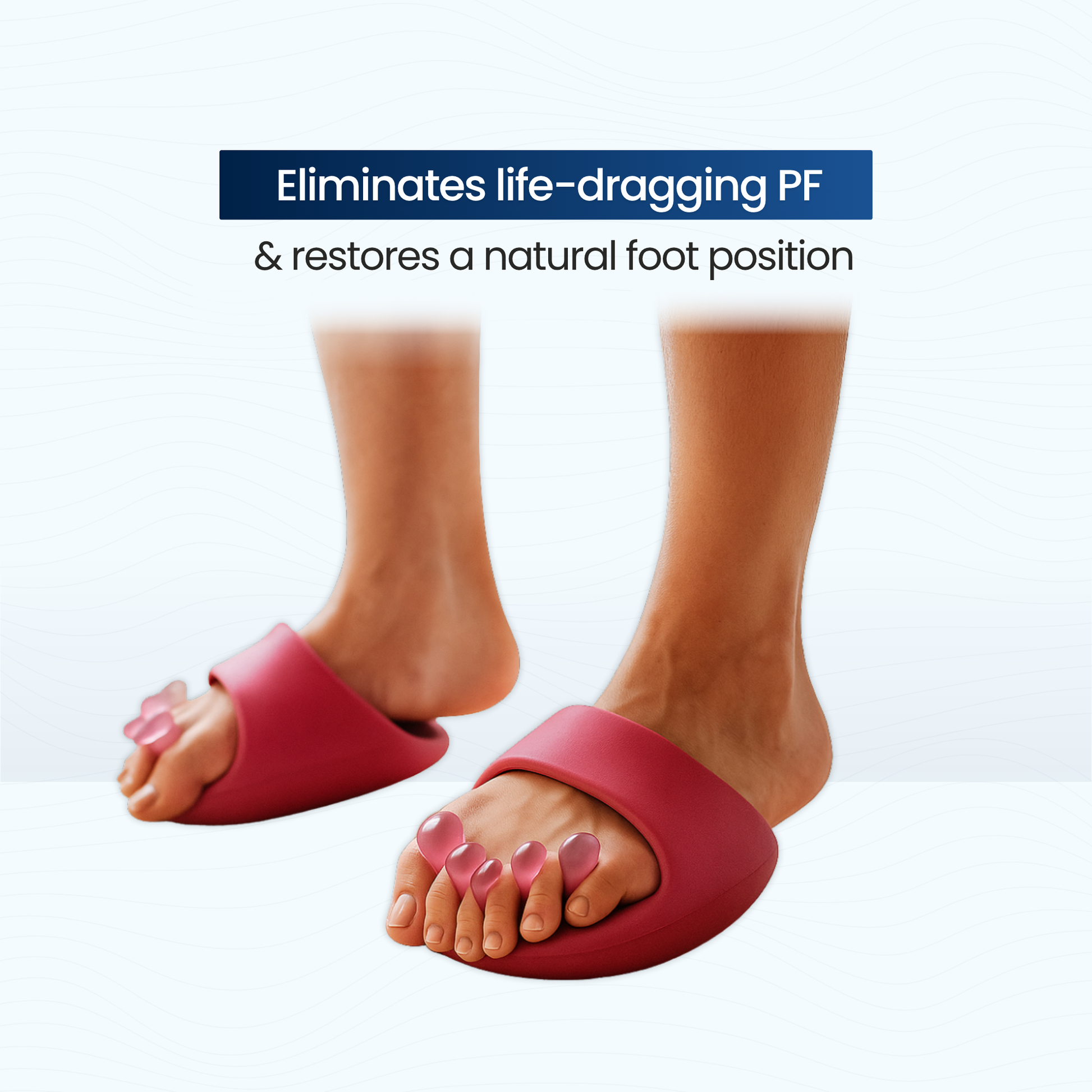 This unnatural alignment increases tension and overstretching of the fascia, since the toes are directly connected to the plantar fascia—which increases the felt discomfort and, to some degree, prevents a full recovery.